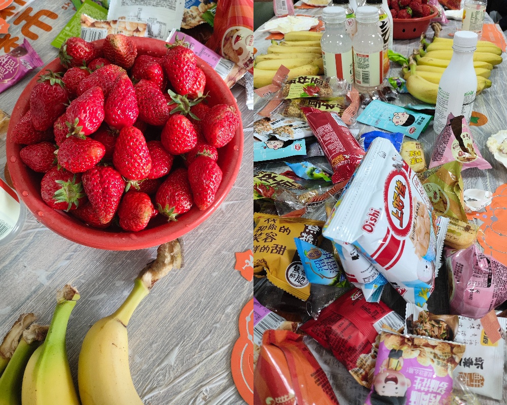 精心部署的园地,整齐摆放的礼物,种种可口的美食,让寿星们对生日会充满了期待。
