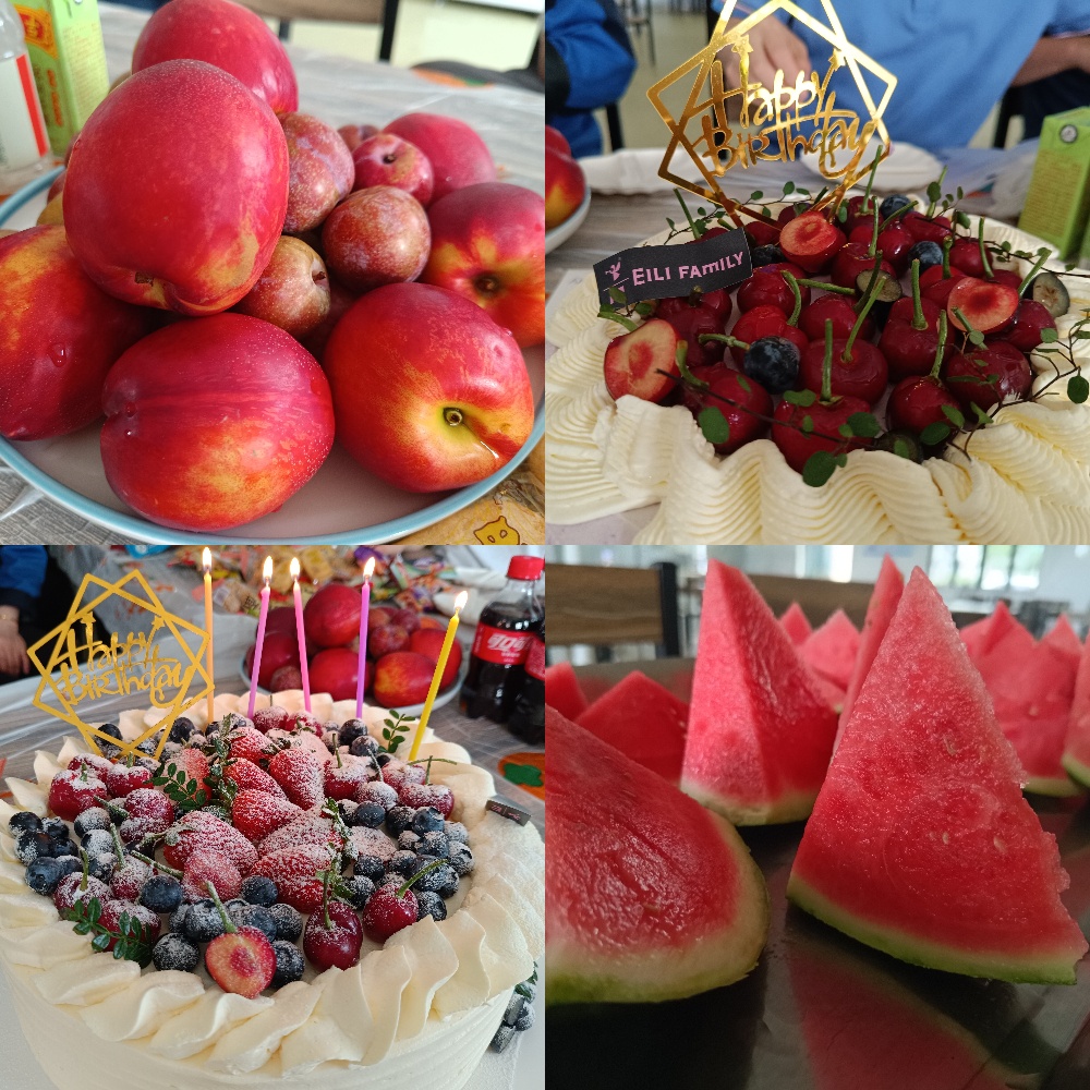 精心部署的园地,整齐摆放的礼物,种种可口的美食,让寿星们对生日会充满了期待。