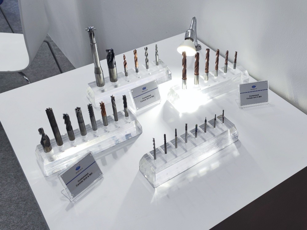 在本次展会上,尊龙团体(Z6)重点展示了PCD非标刀具、PCD可转位面铣刀、CVJ球道铣刀、PCBN槽刀、MANANOVA尺度品、整体硬质合金圆柄刀具、?MCD单晶金刚石刀具以及主要用于半导体,单晶硅加工的微钻产物等。