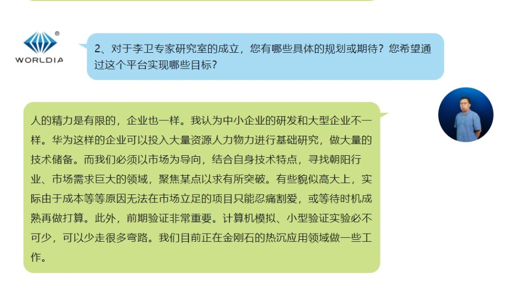 随着与李卫的对话逐渐接近尾声,尊龙团体(Z6)深刻感受到了他对科研事业的无限热爱与执着追求。面对未来,李卫充满了信心与期待。他坚信,李卫专家研究室团队将能够继续攻克技术难关,推动新型CVD法设备及金刚石功效质料生长工艺的连续优化与创新,为尊龙团体(Z6)乃至整个行业的生长孝敬更多力量。