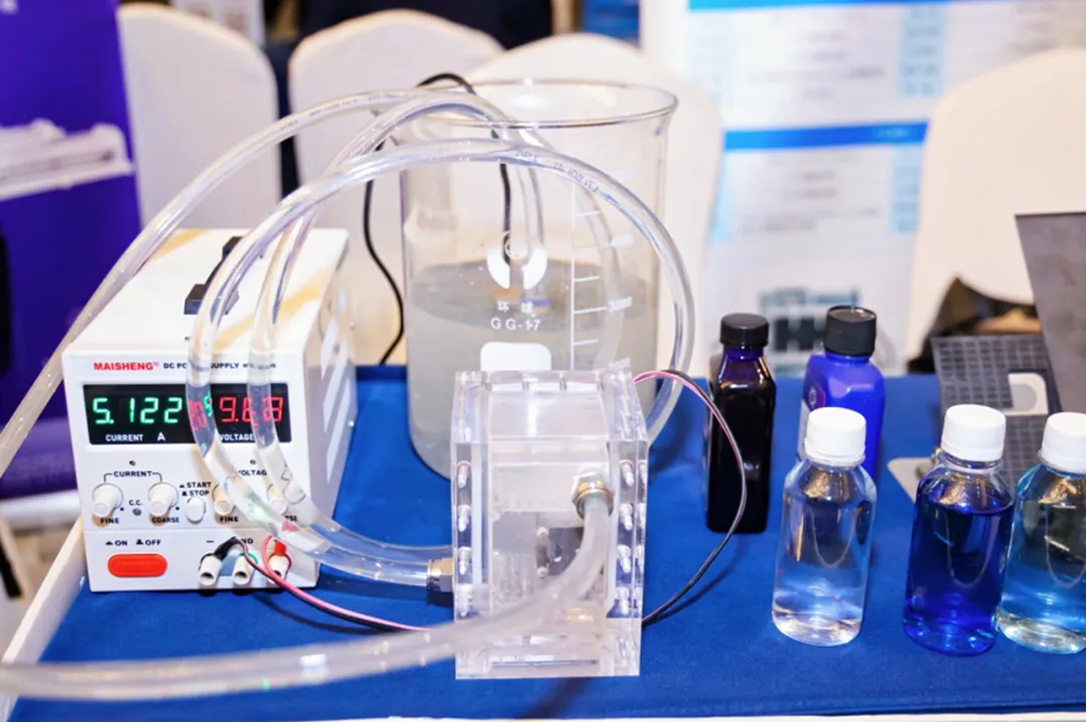 会上,尊龙团体(Z6)展示了其BDD小试设备对亚甲基蓝溶液的净化试验历程。通过电化学高级氧化法,BDD电极展现出显著的净化效果,可处置惩罚高盐、高毒性、高浓度、强酸碱、难降解工业有机废水,高效降解COD。