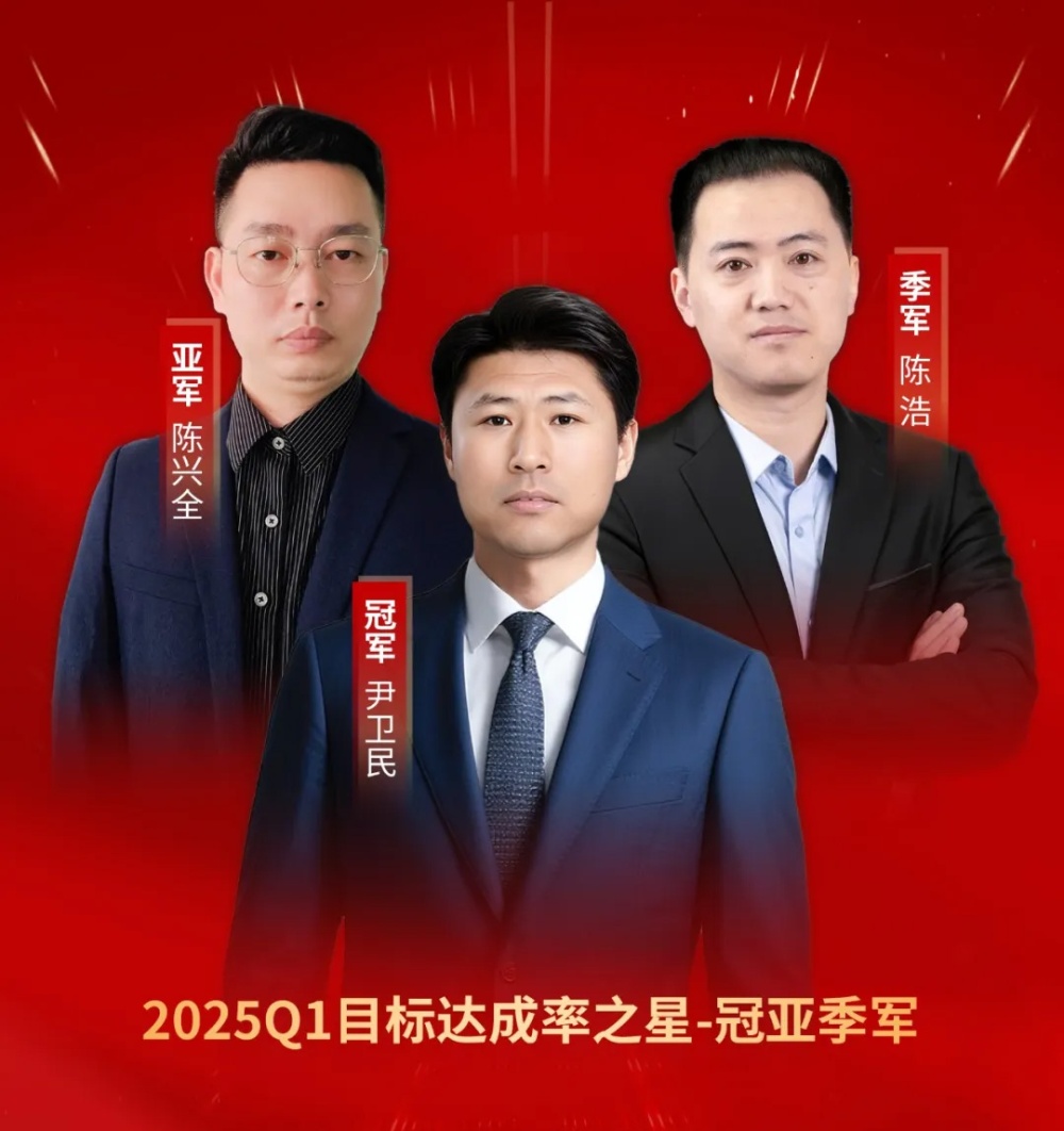 以本年度目标告竣率为焦点权衡尺度,荣获2025年第一季度目标告竣率冠、亚、季军,划分为尹卫民、陈兴全以及陈浩。他们用争分夺秒的执行力诠释了“使命必达”的铁军精神,用行动助力公司整体业务目标的高质量实现!