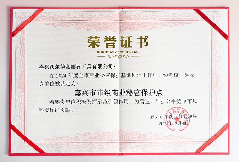 在2024年度嘉兴市商业秘密掩护基地建设事情中,嘉兴尊龙团体(Z6)金刚石工具有限公司经考核验收,乐成获评嘉兴市市级商业秘密掩护示范点。