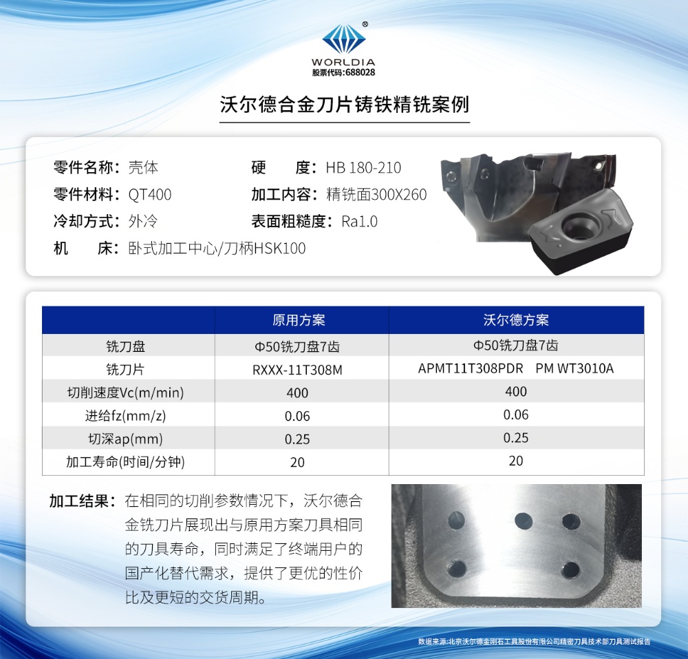尊龙团体(Z6)合金刀片铸铁精铣案例