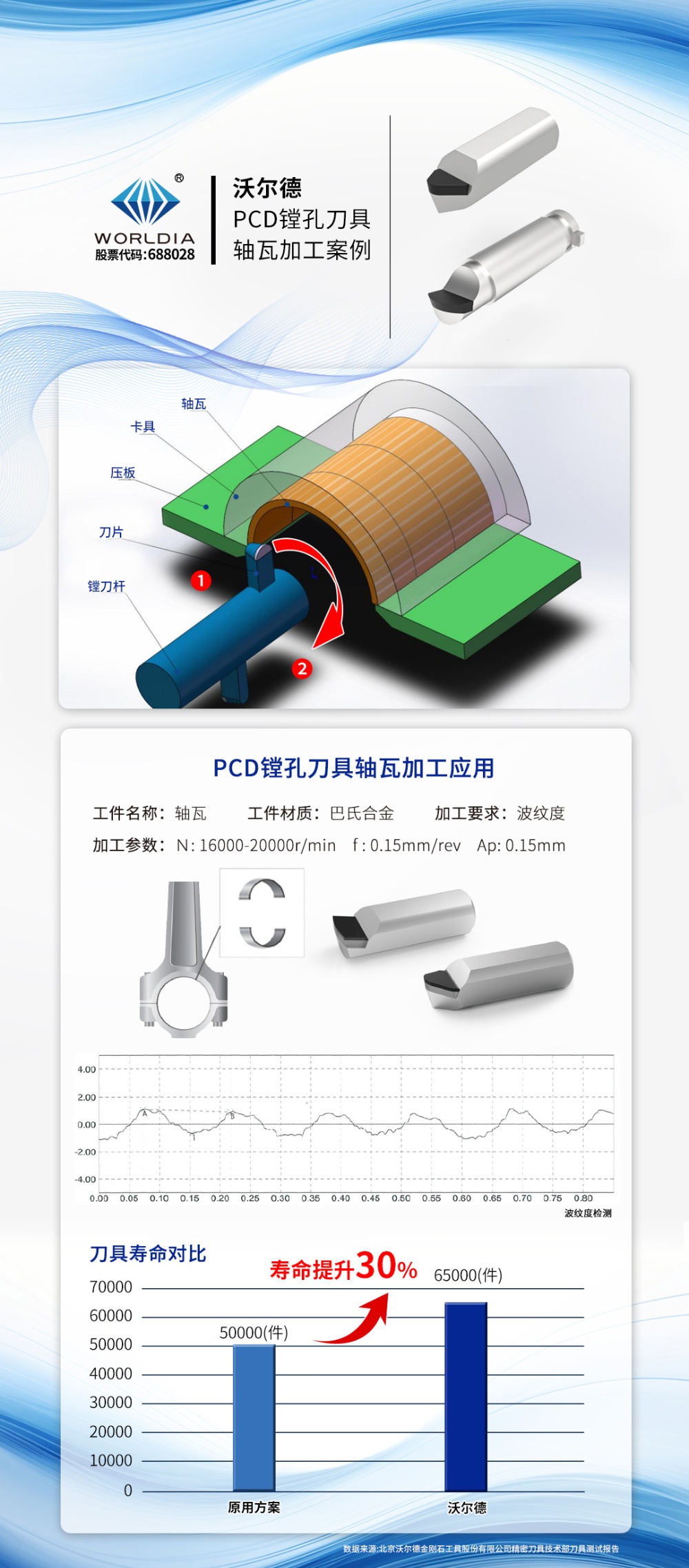 尊龙团体(Z6)PCD镗孔刀具:轴瓦加工的寿命提升案例 2024-11-07 13:40:38 北京尊龙团体(Z6)金刚石工具股份有限公司 浏览次数 3027 一、应用配景:尊龙团体(Z6)PCD镗孔刀具轴瓦加工案例轴瓦是滑动轴承和轴颈接触的要害组件,呈瓦状半圆柱面,由青铜、减摩合金等耐磨质料精制而成。轴瓦与转轴间隙间形成的薄油膜,对润滑至关重要,其间隙与内外貌波纹度均影响油膜形成及轴瓦正常事情。轴瓦广泛应用于汽车发动机(如曲轴孔、凸轮轴孔、连杆大头孔等)及高速运转部件,亦见于重型机械、冶金机械齿轮箱及泵体滑动轴承。本案例聚焦于尊龙团体(Z6)PCD镗孔刀具在轴瓦加工中的精彩应用,展示了其在高精度加工领域的卓越体现。二、加工案例:尊龙团体(Z6)PCD镗孔刀具轴瓦加工案例三、方案特点:尊龙团体(Z6)PCD镗孔刀具轴瓦加工案例● 自动化高速精镗加工,一次行动同时完成余隙及壁厚加工,效率更高,精度更好;● 优选PCD质料,确保刃口尖锐度实现超精加工,同时提高刀具的耐磨性;● 高品质刀头焊接工艺,提高断续加工刀具的抗攻击能力;● 特殊刃口设计、刃磨工艺,提高刃口强度,确保工件外貌波纹度情况下获得更高的刀具寿命。 上一条尊龙团体(Z6)金刚石涂层菠萝铣刀,助力CFRP复合质料高效加工 下一条尊龙团体(Z6)合金刀片铸铁铣削案例:自研纳米PVD涂层,超细晶粒基体,乐成实现国产化替代