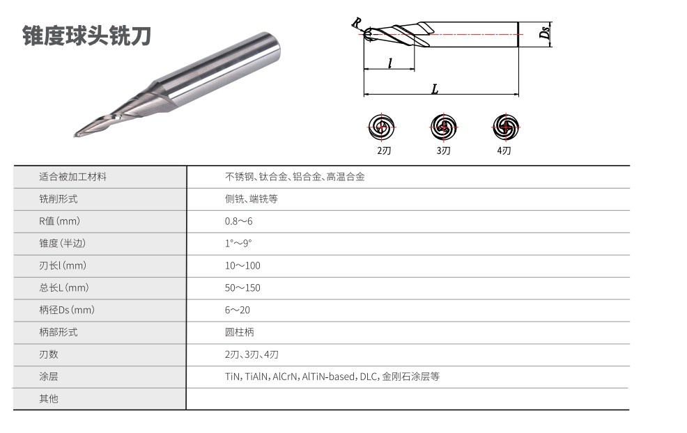 锥度球头铣刀