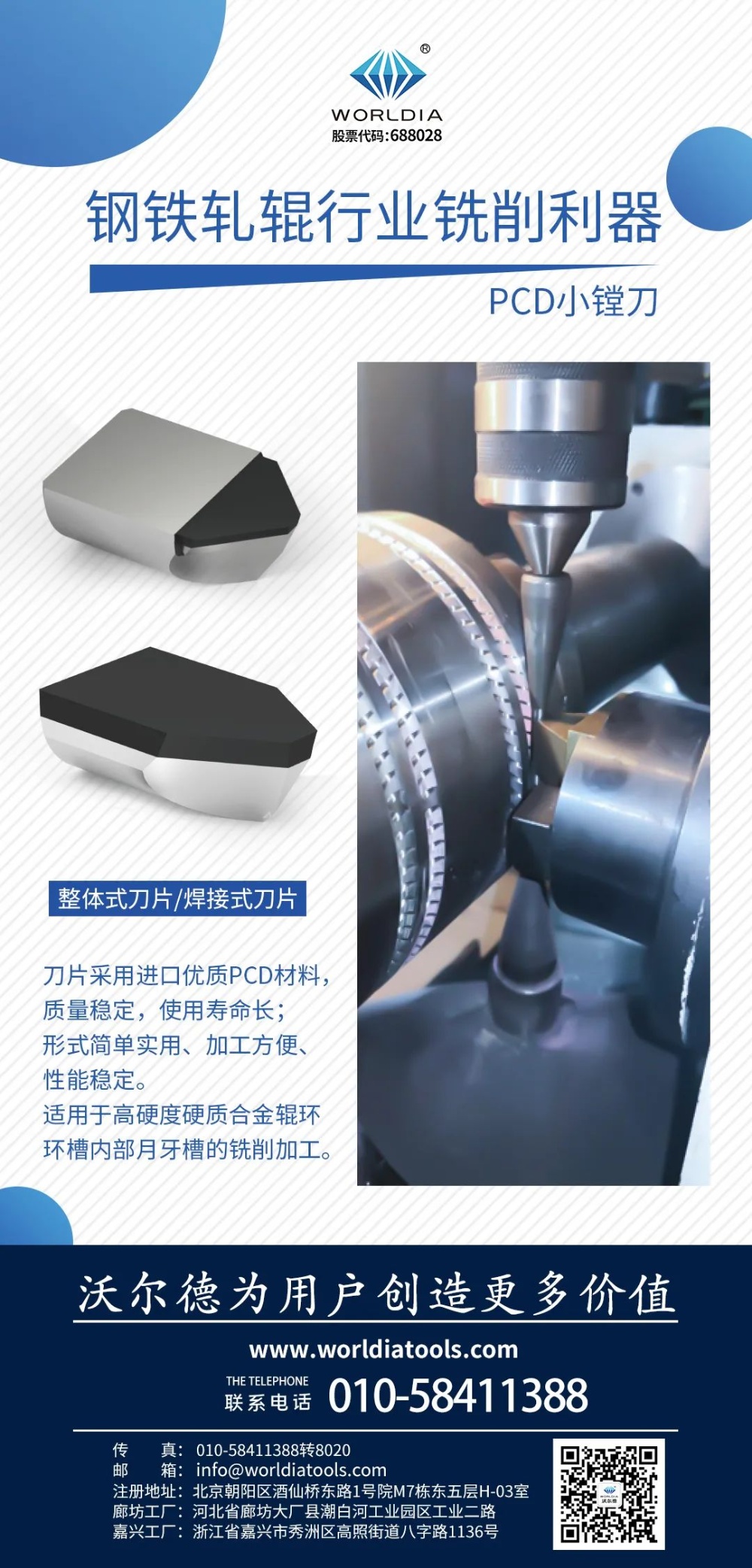 尊龙团体(Z6)PCD小镗刀,刀片接纳进口优质PCD质料,质量稳定,使用寿命长;形式简朴实用、加工方便、性能稳定。适用于高硬度硬质合金辊环环槽内部月牙槽的铣削加工。
